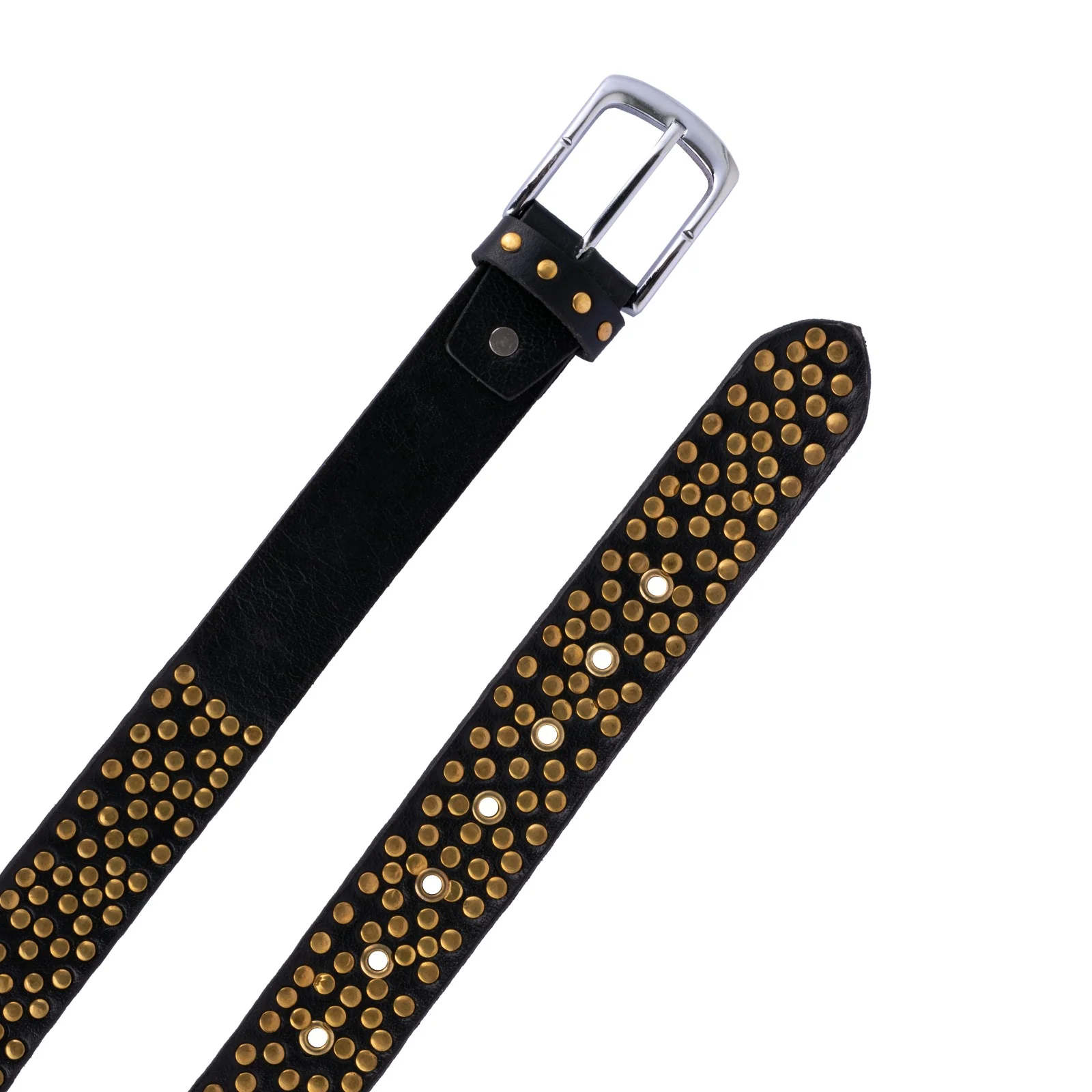 The Nottinghamshire Black rock 'n' roll Golden Handmade studded leather belt