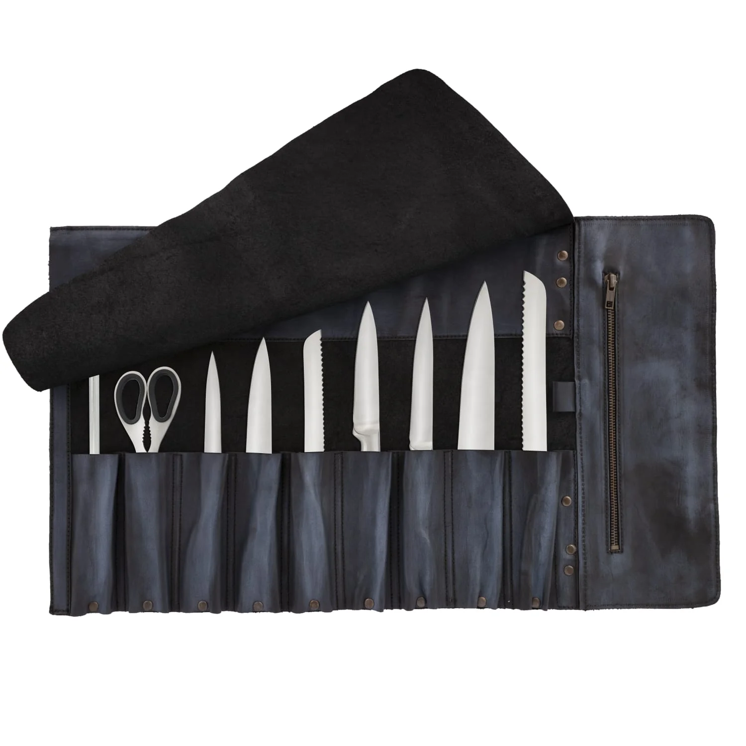 The County Durham Black Wax 10 Pocket Handmade Leather Chef Roll