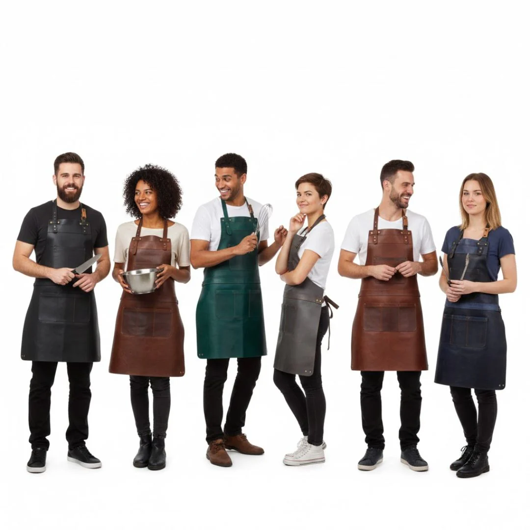 This apron is a top choice for those who adore luxury items. It's crafted from thick (1.3 to 1.5mm) and long-lasting cowhide leather, featuring a rare distressed stonewash appearance that's a gem in real leather. Rest assured, the quality of this apron will exceed your expectations!