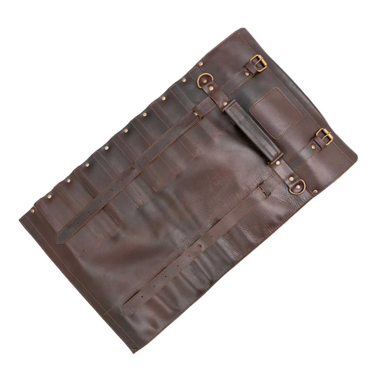 The herefordshire Dark Brown Full Grain 10 Pocket Handmade Leather Knife Roll