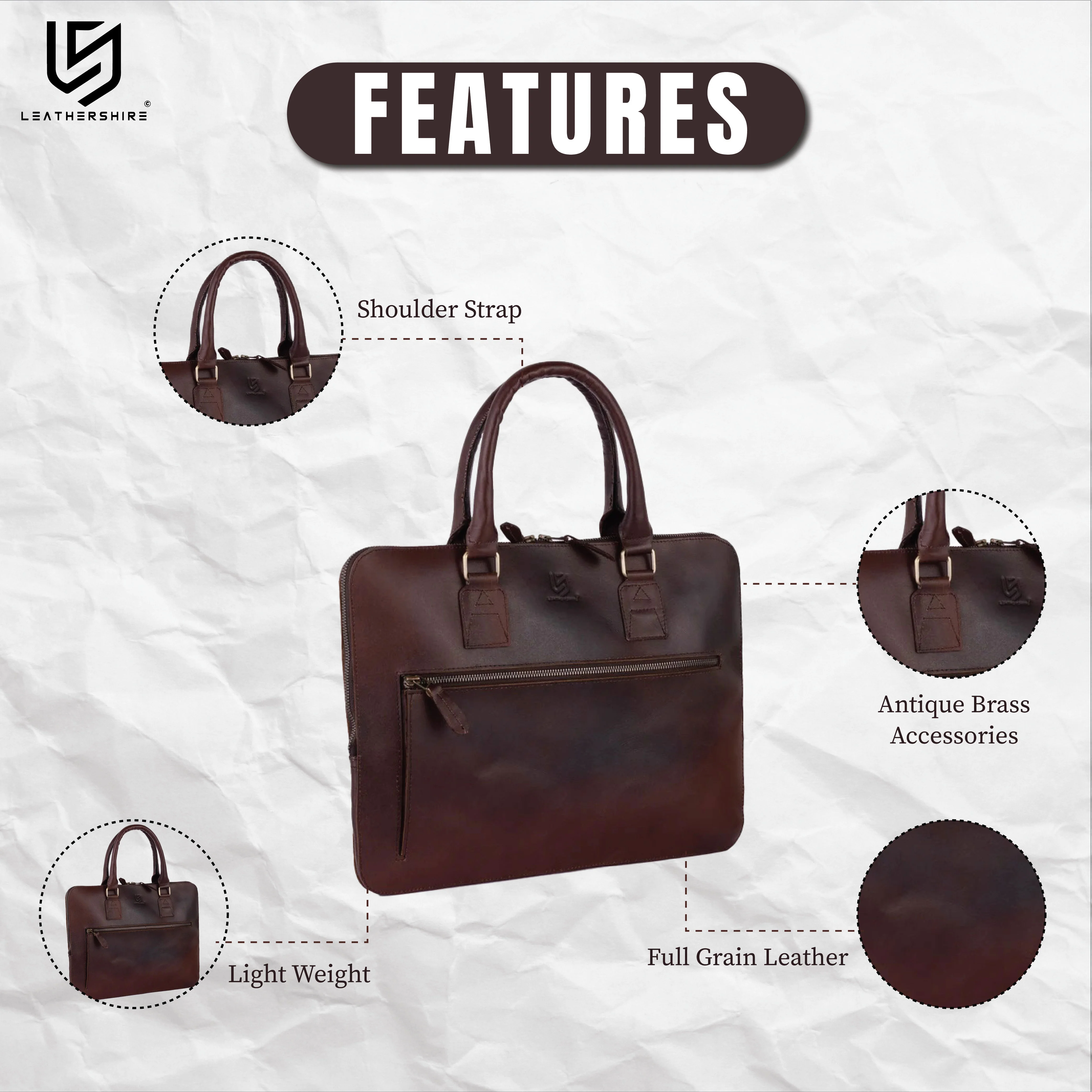 The Bedfordshire Full grain Dark Brown Leather Laptop Sleeve