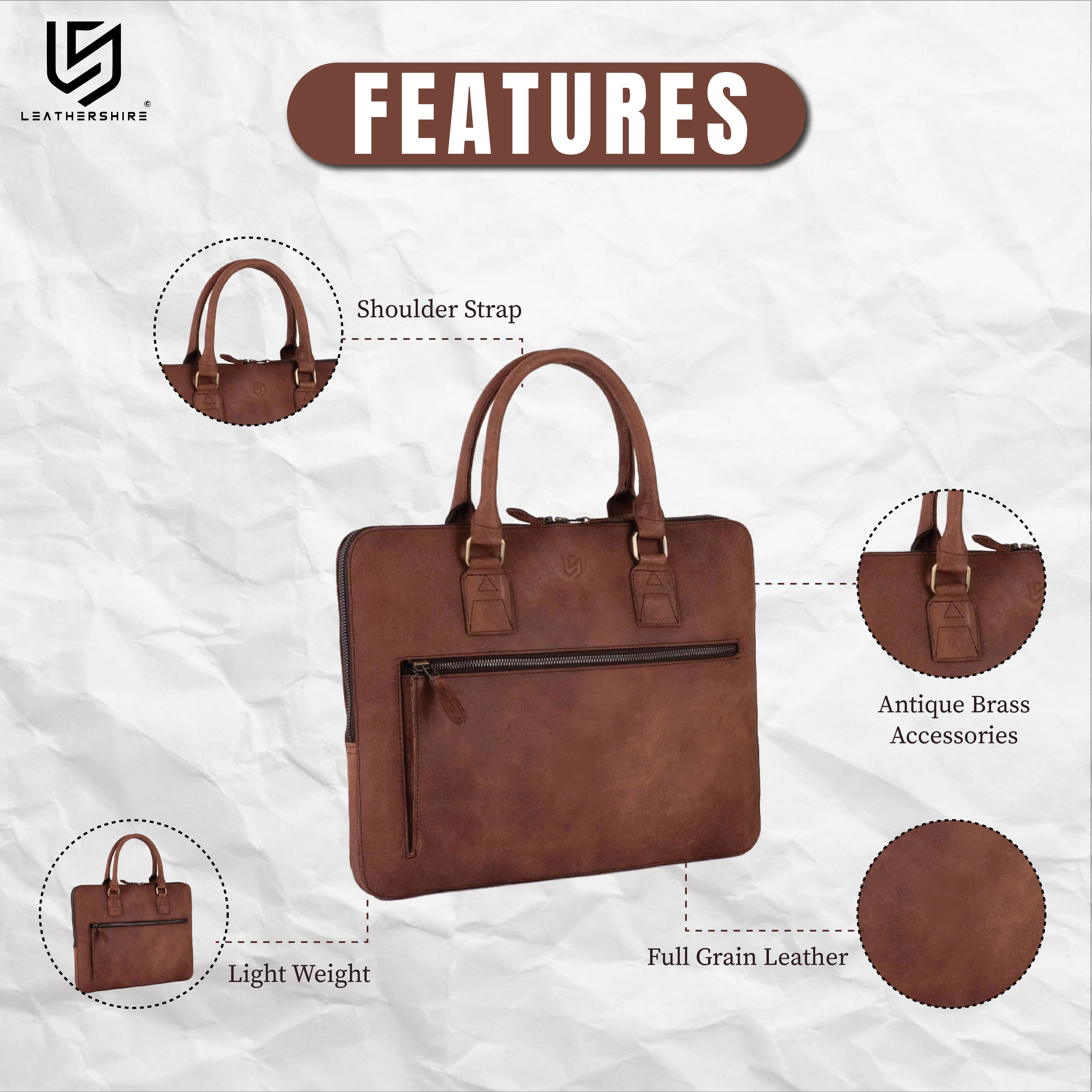 The Northamptonshire Full grain Crazy Horse Brown Leather Laptop Sleeve Bag