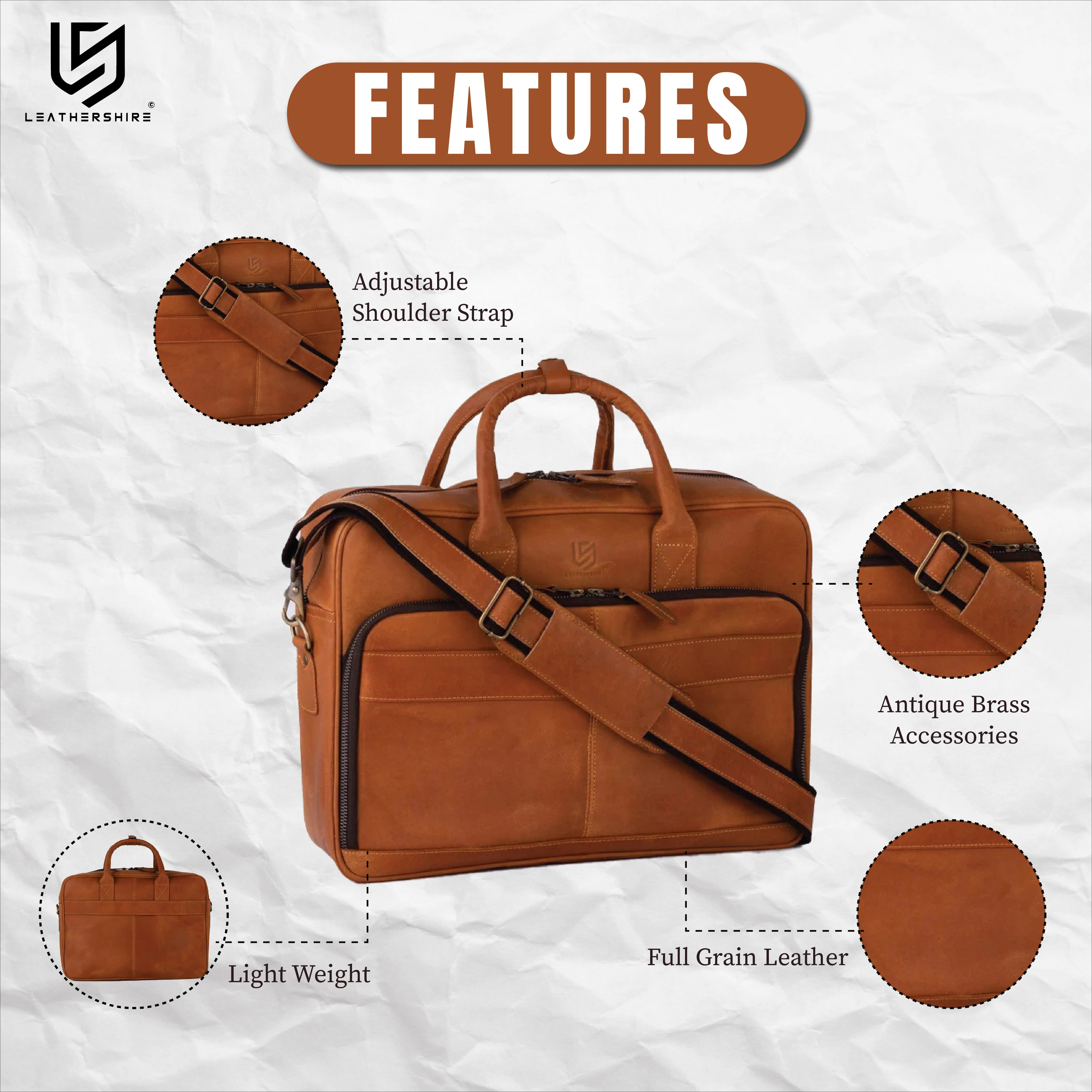 This Leather Bag will last for years because of the high-quality real material used to make these.
