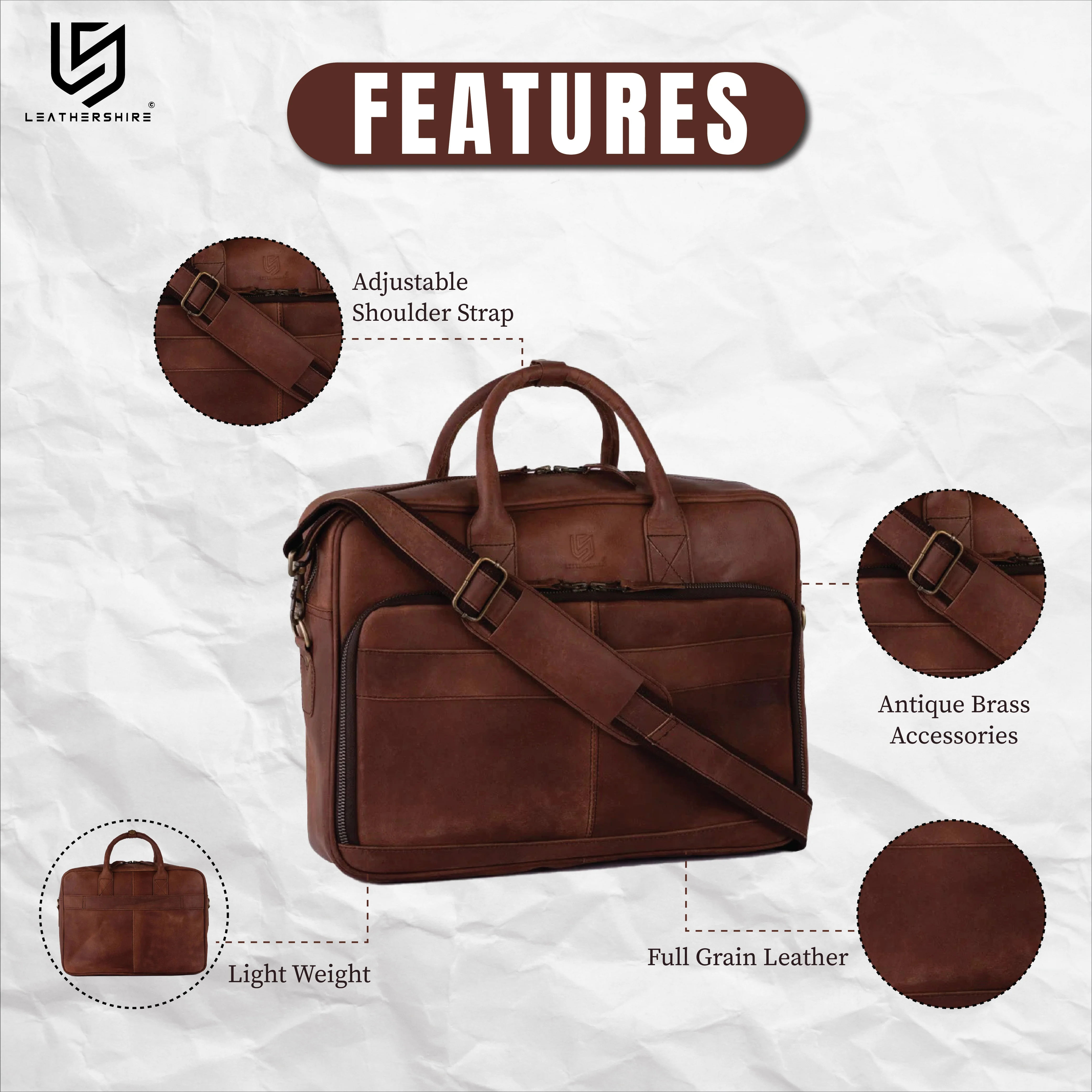 The Buckinghamshire Brown Leather Crazy Horse Laptop Bag