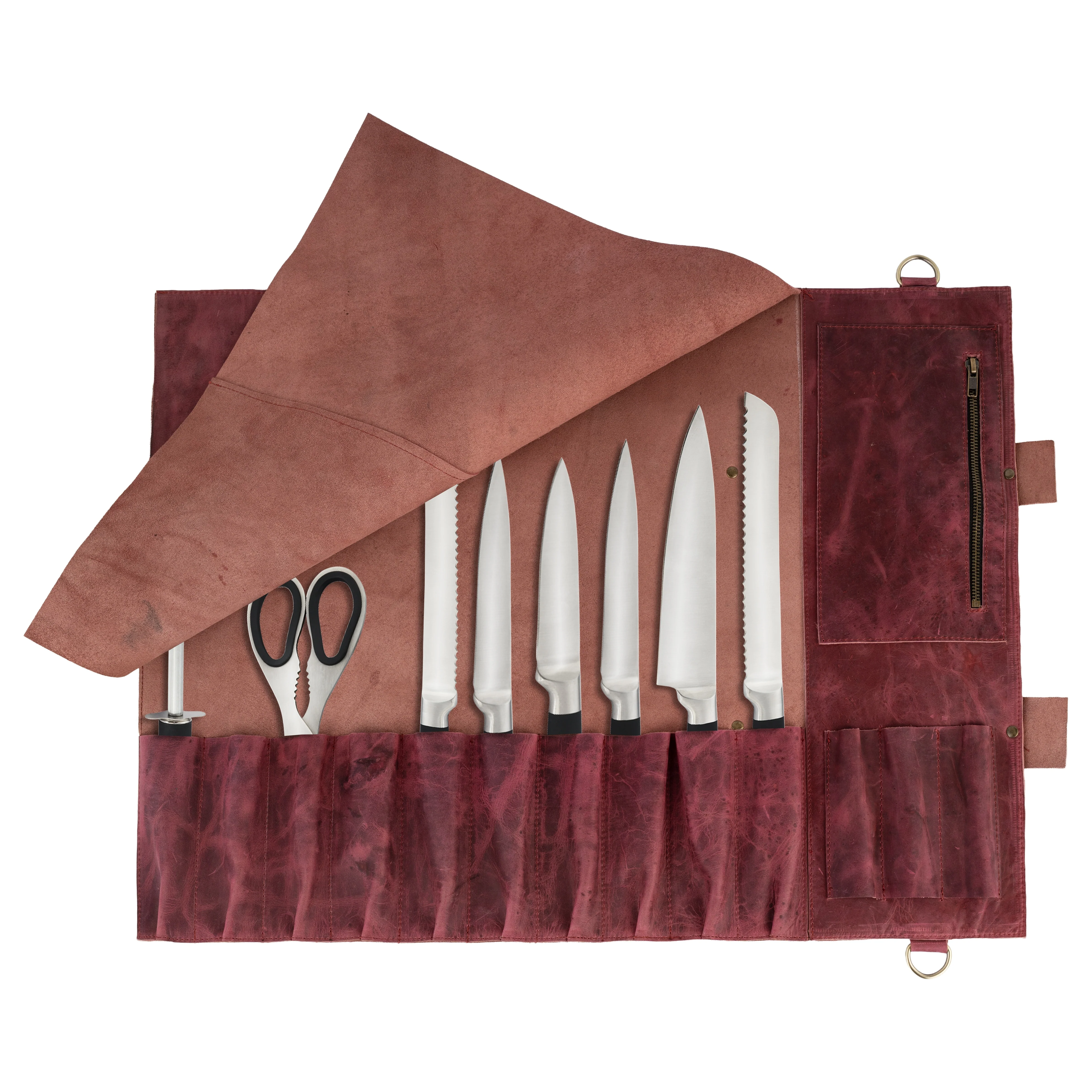 The Dorset Red Crazy Horse Pull up Leather Knife roll - Biggy