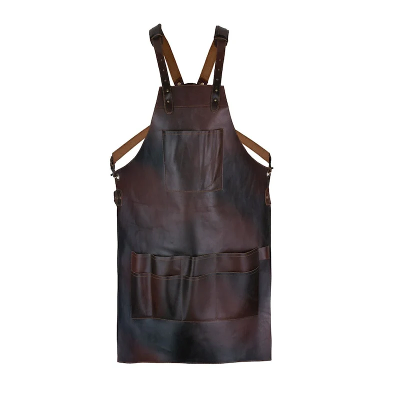 This apron is a top choice for those who adore luxury items. It's crafted from thick and long-lasting cowhide leather, featuring a rare distressed stonewash appearance that's a gem in real leather. Rest assured, the quality of this apron will exceed your expectations!