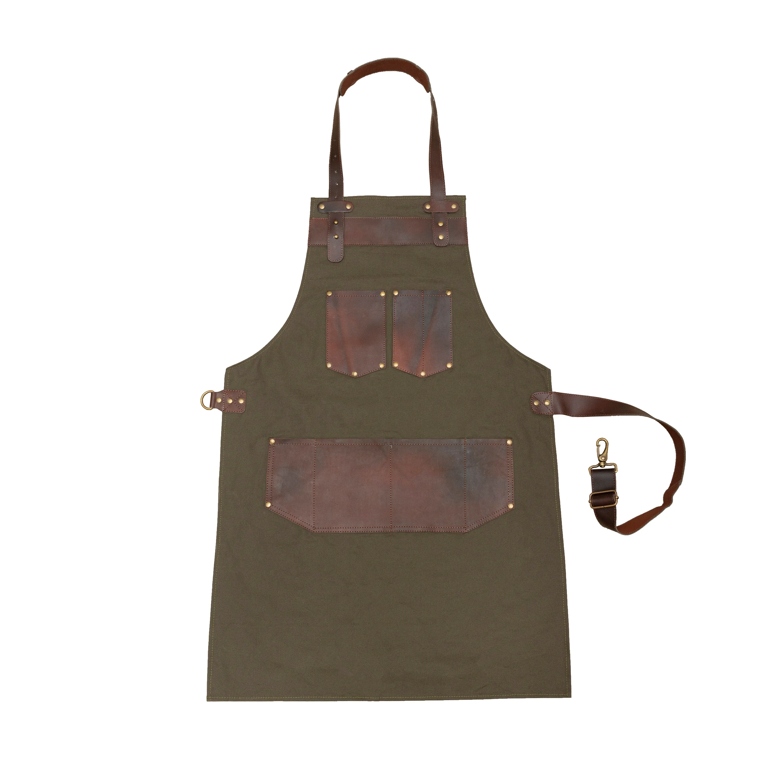 The Northumberland Top Grain Leather Green Canvas Apron - Free Customized Branding