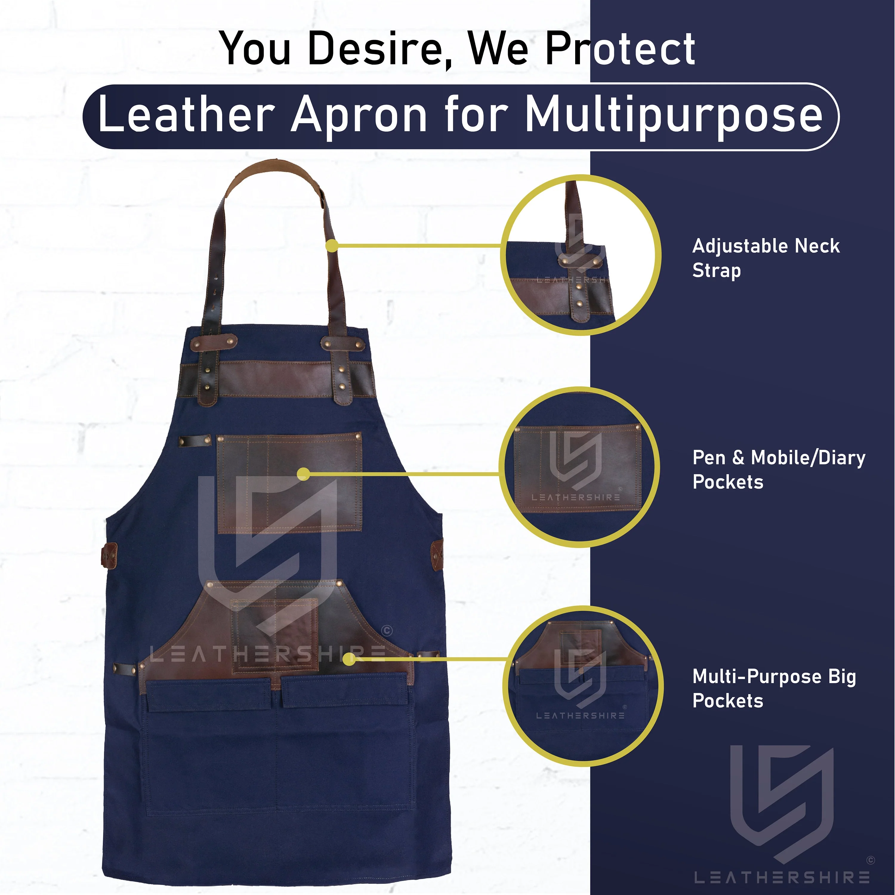 This apron is a top choice for those who adore luxury items. It's crafted from thick and long-lasting cowhide leather, featuring a rare distressed stonewash appearance that's a gem in real leather. Rest assured, the quality of this apron will exceed your expectations!